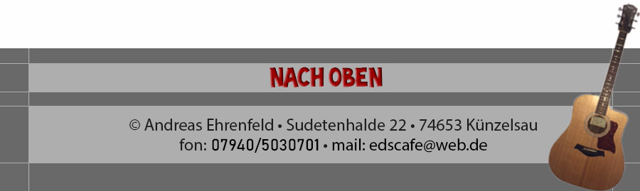 Schauen Sie sich unsere Repertoire an, damit Sie eine Vorstellung von unserem Sammelsurium an Stücken bekommen. Wir decken fast alle Genres und Stile ab. Ob Folk, Pop, Rock oder sogar Reggae, wir spielen die Stücke natürlich immer in unserem unverwechselbaren akustischen Edscafe Stil, im Trio - ohne Netz und doppelten Boden.